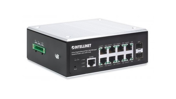 以太联Intellinet Network Solutions的带2个SFP端口的8端口千兆以太网PoE+网络管理型工业交换机专为在恶劣环境或温度较低的地方提供所需的网络连接和设备电源而设计。该交换机采用IP30防护等级的坚固金属外壳,即使在-40 - 185°F(-40 - 85℃)的极端温度下也能可靠、安静地运行。结合DIN导轨安装选项和两个安全冗余直流电源输入(带断电报警)以及大量其他安全功能,该交换机是工业4.0和工业4.0中物联网应用的理想之选。
